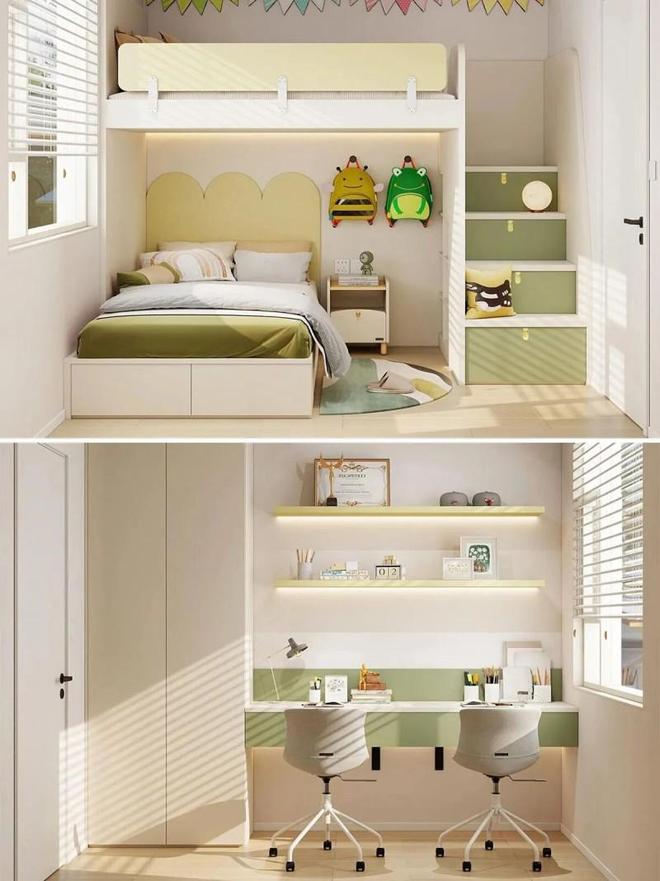 学习、娱乐、休息区域各司其职,通过一体化设计与灵活布局,满足孩子的多元需求。