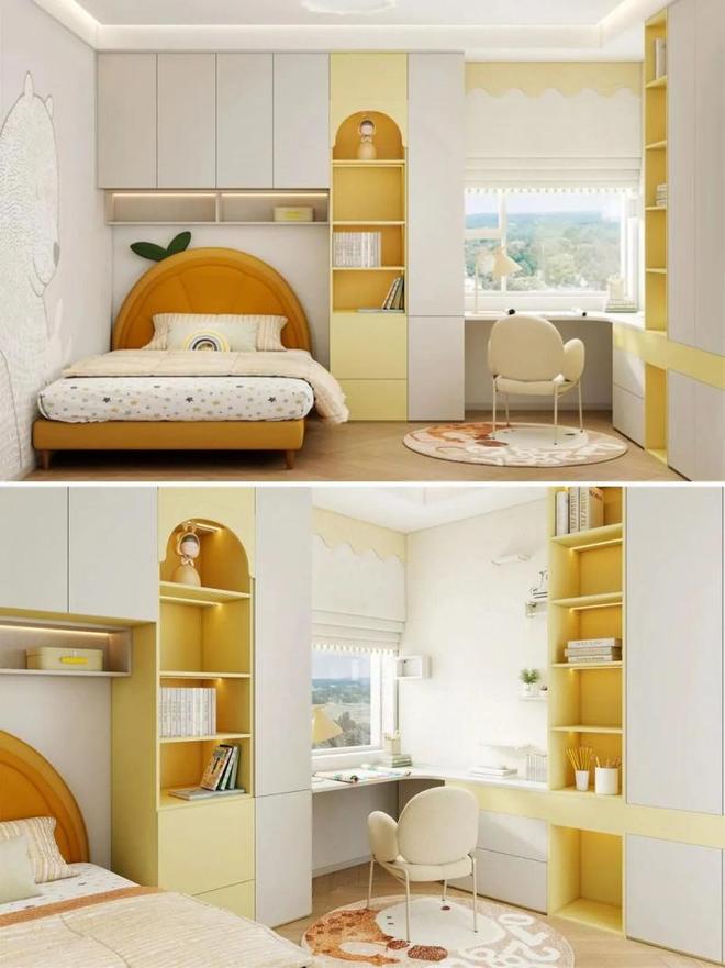 学习、娱乐、休息区域各司其职,通过一体化设计与灵活布局,满足孩子的多元需求。