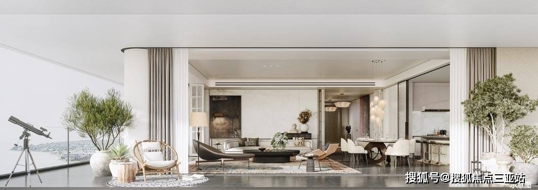 南北通透,超阔南向开间、内外景致无限交融,一切服务于奢适至上,从光影、视野、体感等营造纯粹阔绰的空间格局。