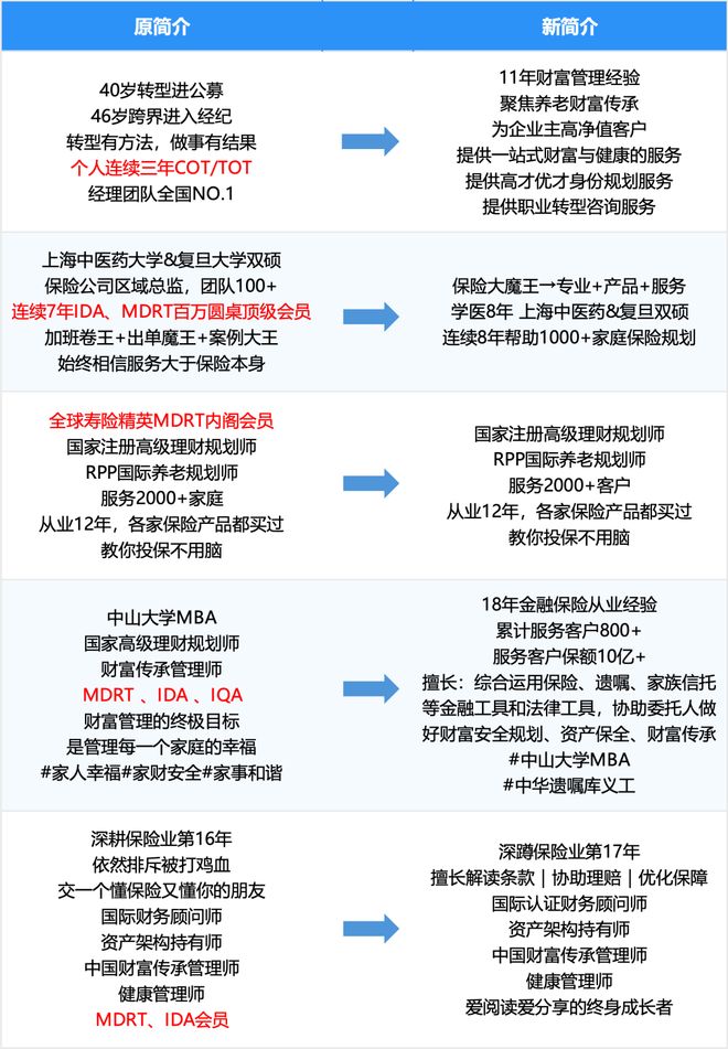 但再看看目前调取的最新信息:已有超10%的从业者把MDRT、COT、TOT、IDA等字样从简介中删除了。