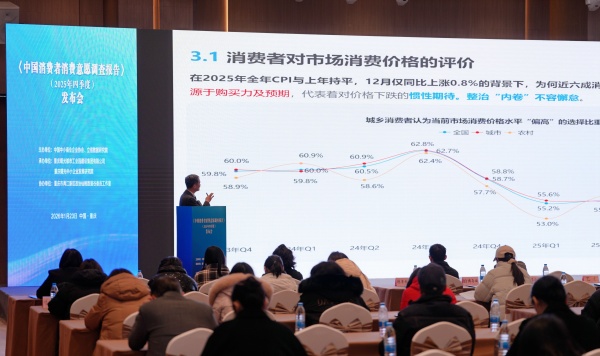 1月23日,由中国中小商业企业协会与立信数据研究院联合主办的《2025年四季度中国消费者消费意愿调查报告》在重庆发布。报告显示,2025年四季度我国消费需求呈现出“即期意愿平稳,预期意愿偏弱、结构呈现分化”的总体特征。消费者对收入增长、就业稳定和社会保障完善充满期待,同时对价格高度敏感,凸显对性价比的极致追求。